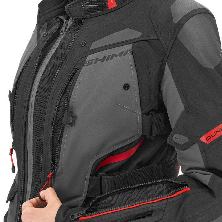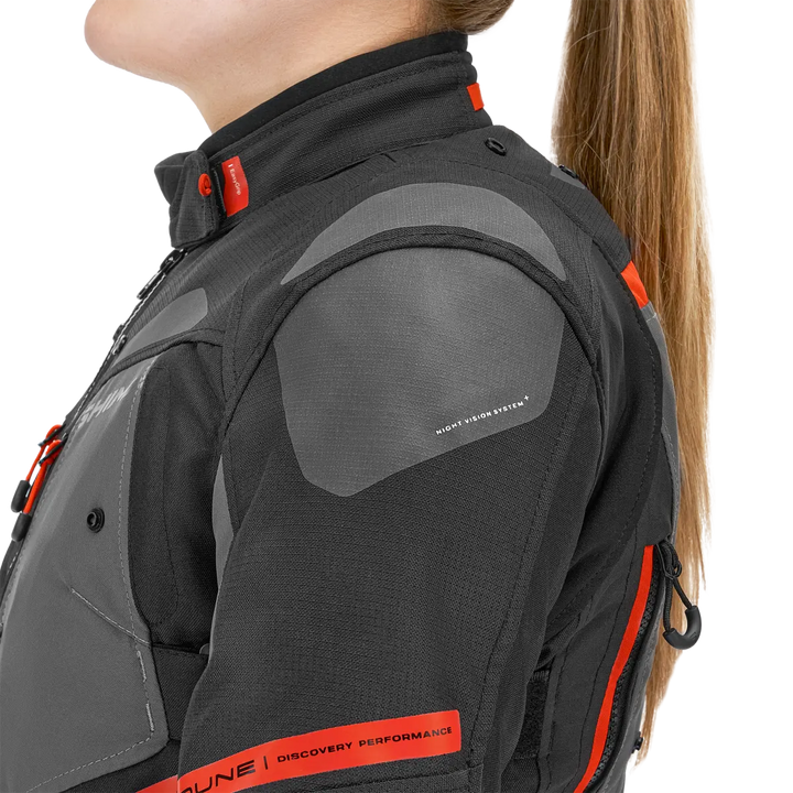 Dune Lady je jedna Třifázová bunda se vším, co potřebujete: odolná vnější vrstva, a Membrána NextDry ™ To udržuje déšť venku a také odnímatelnou vnitřní bundu, která vás udržuje v teple, když klesne teplota. A když svítí slunce? Pak právě otevřete Ventilační panely na hrudi, zadních a předloktích - nebo pomocí inteligentního H3 Pro ™ ventil na zipu - Pro cool na cestách.