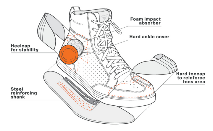 Stylový a moderní design těchto tenisek je kombinován s pohodlím a ochranou. Jsou vybaveny krycí deskou SAP TPU na kotníku a vyztuženými nohama a gramofony, aby absorbovaly dopad v případě pádu. Pro ještě lepší ochranu, Blakeové boty posílily gumovou podešvu.