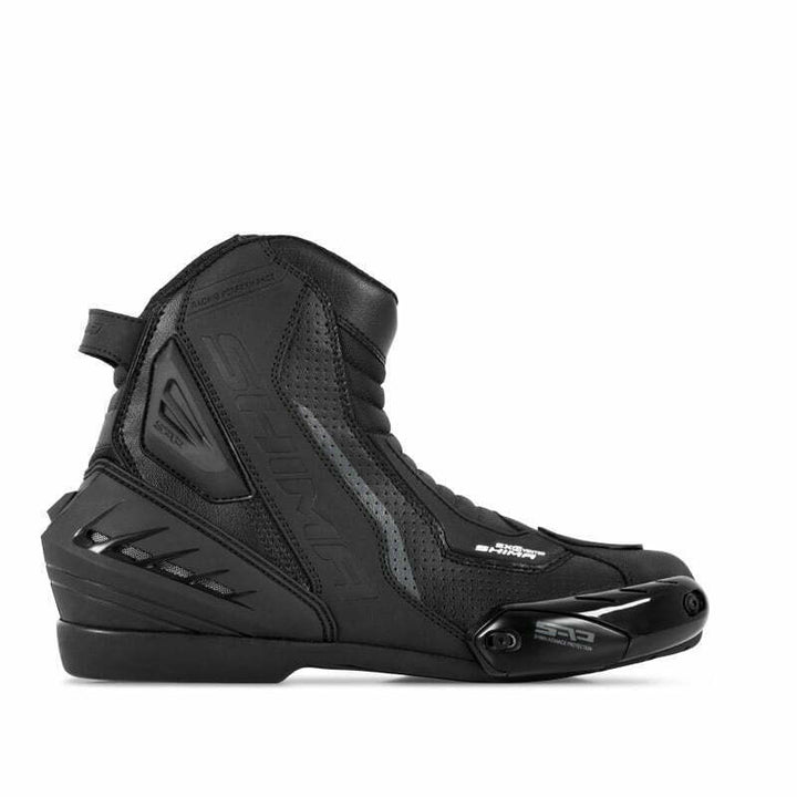 Boty byly vyrobeny v mírně nakloněné poloze horní části přizpůsobené poloze řidiče na motocyklu při jízdě. Mají ergonomickou gumovou podrážku, která stabilizuje polohu nohy na nohou a směnnou polštář, aby se zabránilo klouzání a otěru materiálu v tomto místě. Ovládací prvky SAP na nohou usnadňují řidiči složit se, když se zakřiví bez strachu z popadnutí asfaltu.