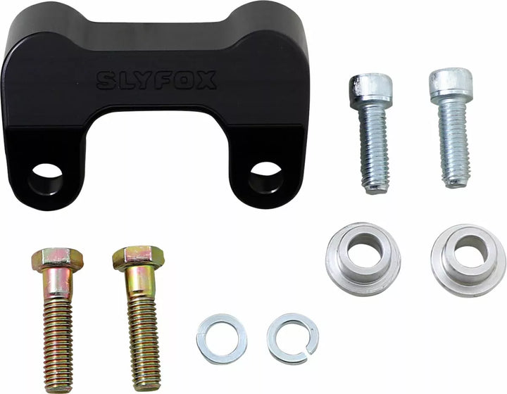 Vyrobeno z hliníku 6061-T6, umožňuje montáž vysokých stoupaček nebo T-barů při zakládání umístění modulu měřidla, nahrazuje stávající stoupačky a svorku; Moundy s existujícím hardwarem, 3-1/2 "na centru 1/2" stoupací montážní otvory, vyrobené v USA, musí být upravena měřicí montážní kryt, aby bylo možné montáž stoupačky/t-bar vyžadovat přemístění zapalovacího spínače nebo zapalování smrtů s CVO bleskem.