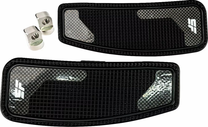 Mini podlahové desky prodávané ve dvojicích jsou postaveny z hliníku sochorů s diamantovým řezem, hliníkem sochory s montáží z nerezové oceli, vložení z uhlíkových vláken pokryté ochranou filmu TPU pro trvanlivost a trvalou povrchovou úpravu, modely s upevněními spolubydlícími na podlahovou desku.