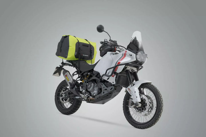 Welded Outer Pocket, Molle Adapter for Attaching Accessory Bags, Universal Fit for Almost All Motorcycles, Made of Sturdy 500D PVC, Waterproof, Extremely Durable Roll, Waterproof, Extremely Durable Handle Lugage Rolla Waterproof Roll Closure and Taped Seams, Reflective Details For Increased Safety On The Road, 1 x Drybag 600 Tail Bag, 4 x Loop Straps, 1 x Paint Protection Film, Mounting Instructions, SIZE: 71,0 x 33,0 x 33,0 cm / 28,0 cm