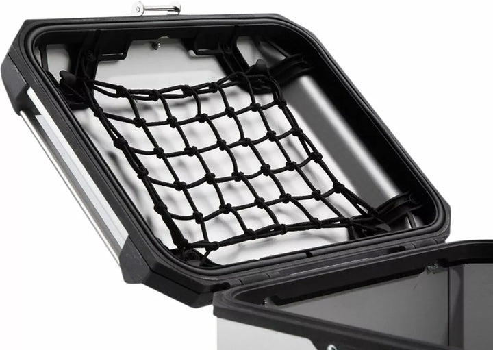 Síť víka pro Trax Adv Top pouzdro, rychlé připojení k zastávkám ve víku, materiál: Vysoce flexibilní, pletený elastický pás, rozměry čistého víka pro 37 litrů Boční pouzdro M: 12 x 28 cm, rozměry víčka pro 45 litru boční pouzdro L: 20 x 28 cm, čisté síťové sítě
