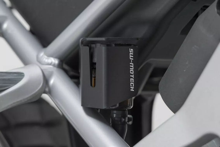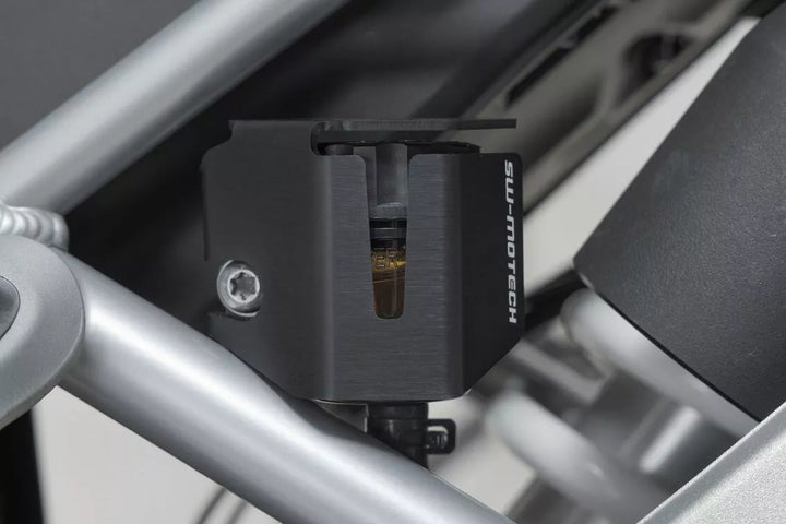 Kompaktní strážce nádrže na brzdu chrání původní rezervoár brzdy před skalními čipy a současně zabraňuje nežádoucímu odstranění krytu. Protektor může být nainstalován na motocyklu v několika jednoduchých krocích, vyrobených z 2 mm silného hliníku, vysoce kvalitního designu a řemeslného zpracování, chrání původní rezervoár brzdové nádrže před skalními čipy, zabraňuje nežádoucímu odstranění krytu, včetně doručení
