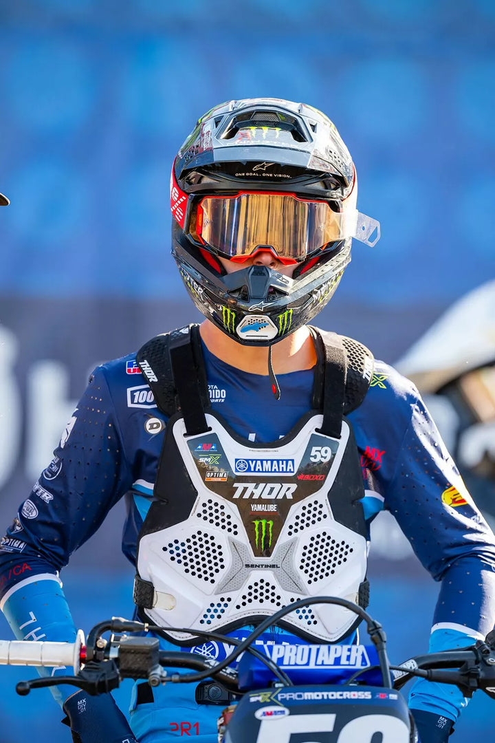 Lehký nízkoprofilový konstrukce předního a zadního panelu, lisovaný a ventilovaný komfortní vložkou, hojně umístěné ventilační porty pro maximální chlazení, nastavitelné elastické uzavření s rotujícím sponou, nastavitelnou rameni a nastavitelnou pěnou umístěnou na hrudníku a zad, protektoru zády EN 1621-2: 2014.