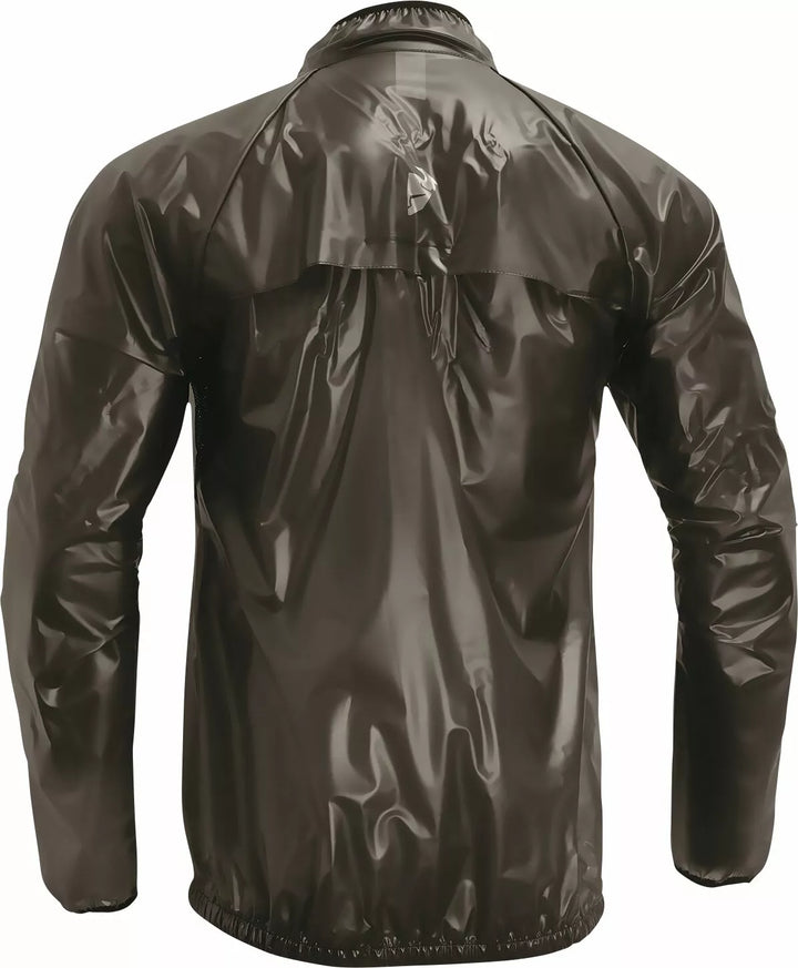 Vodotěsný zip, rukávy Raglan s panely předloktí pro ventilaci, elastickou vazbu na límci, manžety a pas, zadní výfukové otvory umožňují úniku horkého vzduchu