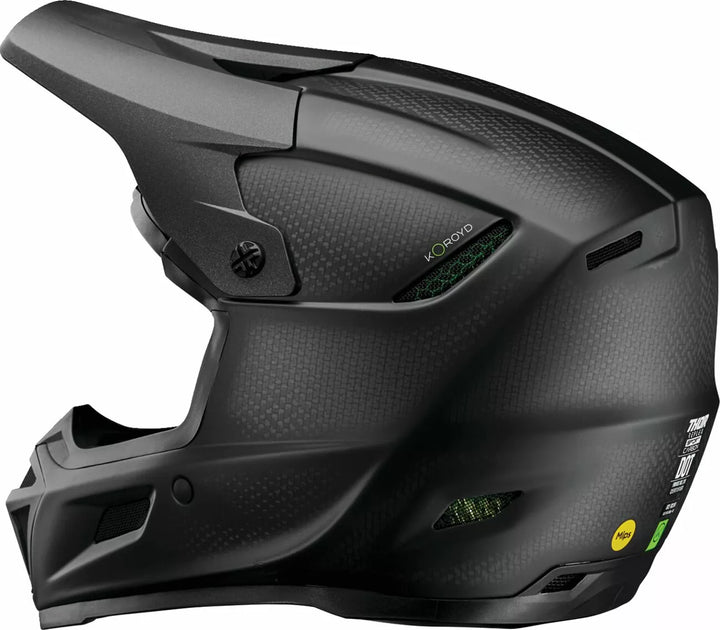 Shell vyrobená z uhlíkových vláken, spektra ™ a laminátu ze skleněných vláken, nastavitelného hlediska, MIPS® Integra TX Comfort Padding Bezpečnostní systém pro snížené rotační síly přenesené do hlavy, vnitřní tvarované lícní polštářky s rychlým uvolňováním vložky s technologickou integrací Koroyd®, zahrnutá tyčinky