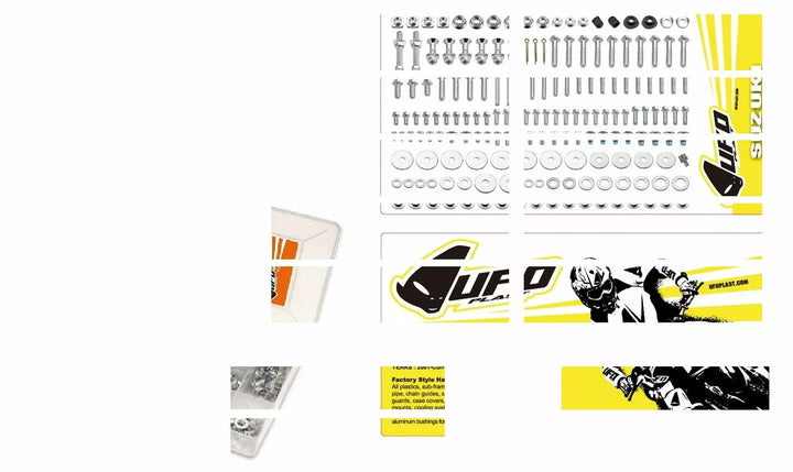 Hardwarové soupravy ve stylu továrního stylu Earns: Všechny plastové, subframe, brzdový systém, výfukové potrubí, řetězové průvodce, smyčkové desky a stráže, kryty pouzdra, trojité svorky, držáky tyče, chladicí systém, šrouby špetky Axel, sedadlo a další