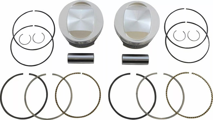 Forged Piston Crown with Genrous Valve Pockets for Big Valves and Cams, Precision-Fit Rings Selected for Each Application for Ultimate Sealing, Force-Fed Pin Oiling Provides Enhanced Lubrication of the Piston Pin, Power Power Lights, Ring Linduces Rima, Coating Reduces Friction, Providing Quiester Operation and Improving Scuff Resistance, Valued-Packaged with Two Pistons, Rings, Piston Pins and Circips, Píst se vyrábí v USA