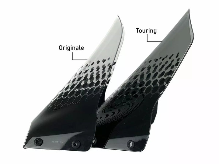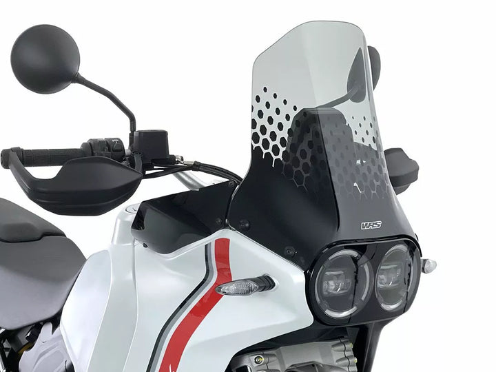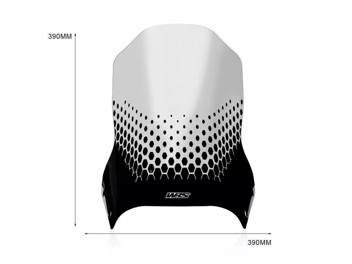 Čelní sklo vyrobené z vysoce kvalitního PMMA Plexiglass., Otravná turbulence na ramenou a přilbě budou eliminována, větší ochrana nabízená obrazovkou perfektně zapadá do řady kola, což jí dává ještě více aplikací