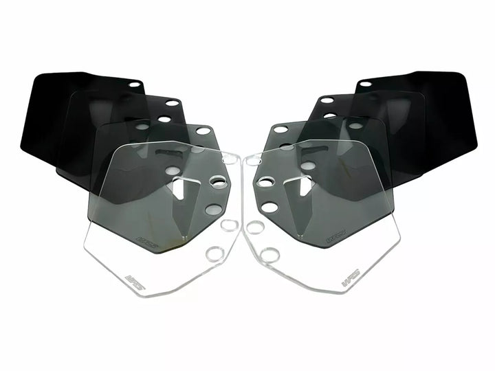Stejná opatření jako originály. Deflektory vyrobené z vysoce kvalitních materiálů, 4/3 mm, vyrobené podle nejpřísnějších bezpečnostních standardů, namontování bočních deflektorů zlepší pohodlí cestování, sníží tlak vzduchu na ramena a armádu