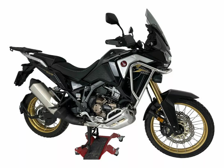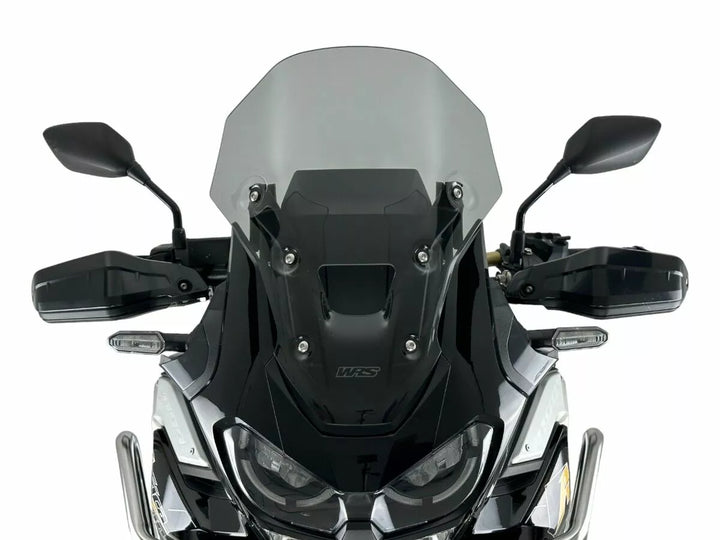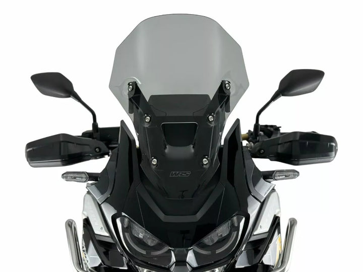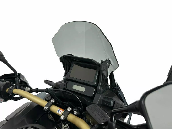 Čelní sklo vyrobené z vysoce kvalitního PMMA Plexiglass., Otravná turbulence na ramenou a přilbě budou eliminována, větší ochrana nabízená obrazovkou perfektně zapadá do řady kola, což jí dává ještě více aplikací