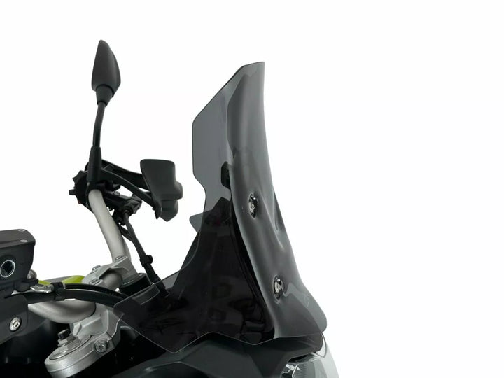 Čelní sklo vyrobené z vysoce kvalitního PMMA Plexiglass., Otravná turbulence na ramenou a přilbě budou eliminována, větší ochrana nabízená obrazovkou perfektně zapadá do řady kola, což jí dává ještě více aplikací