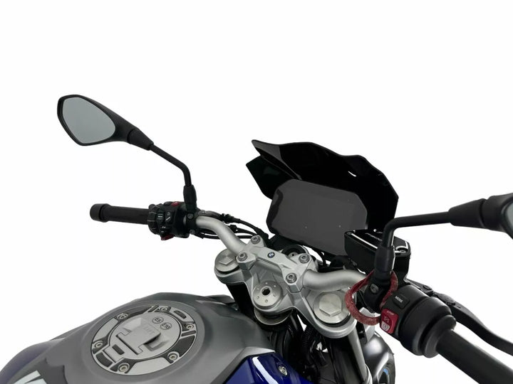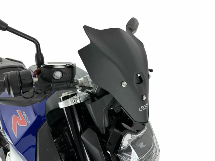 Čelní sklo vyrobené z vysoce kvalitního PMMA Plexiglass., Otravná turbulence na ramenou a přilbě budou eliminována, větší ochrana nabízená obrazovkou perfektně zapadá do řady kola, což jí dává ještě více aplikací