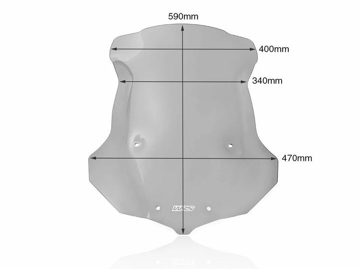 Čelní sklo vyrobené z vysoce kvalitního PMMA Plexiglass., Otravná turbulence na ramenou a přilbě budou eliminována, větší ochrana nabízená obrazovkou perfektně zapadá do řady kola, což jí dává ještě více aplikací