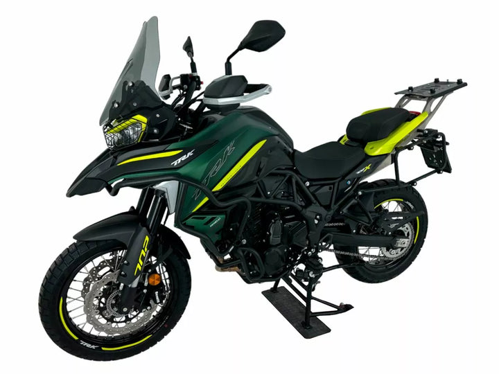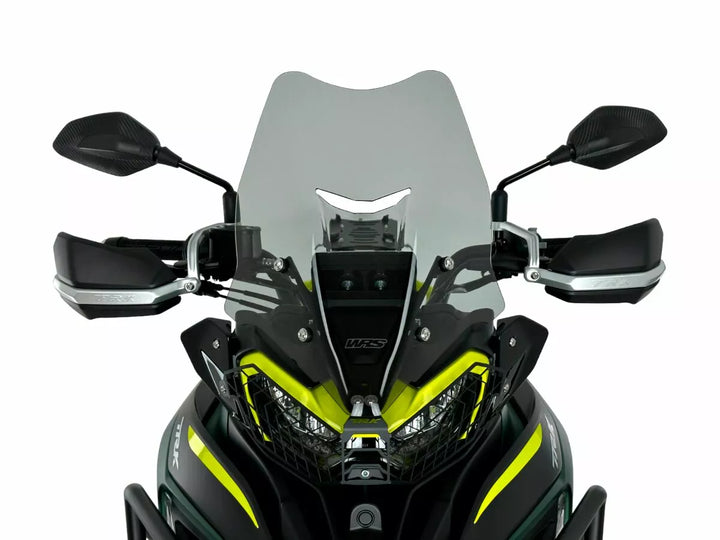 Čelní sklo vyrobené z vysoce kvalitního PMMA Plexiglass., Otravná turbulence na ramenou a přilbě budou eliminována, větší ochrana nabízená obrazovkou perfektně zapadá do řady kola, což jí dává ještě více aplikací
