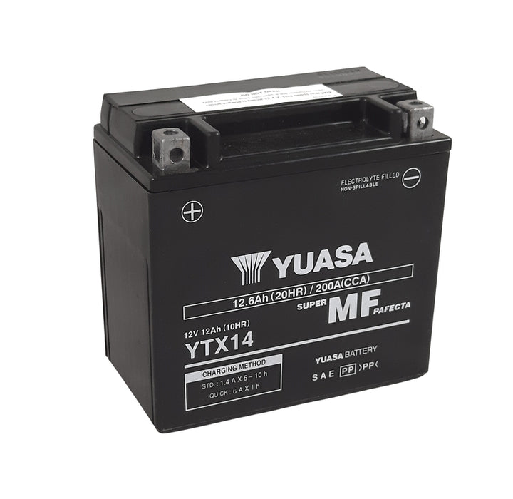 Yuasa je Světový lídr v technologii baterií, a Ytx14-fa je jeden Prémiový výběr pro řidiče, kteří chtějí spolehlivou, údržbu -bez baterie. Perfektní pro ty, kteří hledají Spolehlivá počáteční síla, dlouhá životnost a minimální péče.