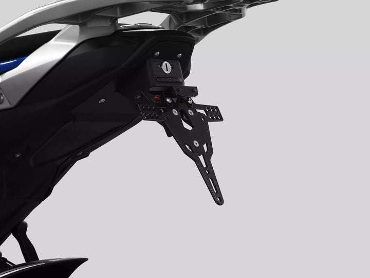 Držák poznávací značky je velmi odolný a odolný proti povětrnostním povětrnostním povětrnostem. , Držák poznávacích značek lze použít pro jakýkoli druh poznávací značky (šířka 175 mm). Není nutná žádná modifikace kapotáže. Plate., Speciální ukazatele světelných světelných ukazatelů (prodává se samostatně) vyžadované pro světla ukazatele zásob. Montážní souprava, LED LED poznávací značka „E schváleno“ vč. Podpora., Zadní světlo s podporou.